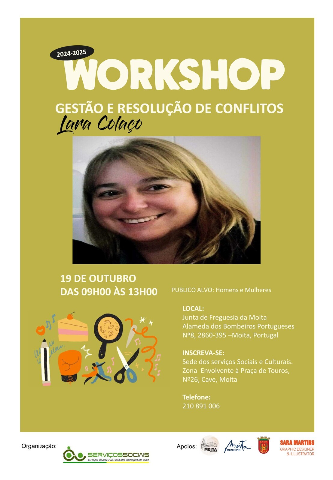 - Local do workshop: Junta de Freguesia da Moita; Alameda dos Bombeiros Portugueses, nº 8, 2860-395 Moita, Portugal; Telf.:21 2808072; email: geral@jf-moita