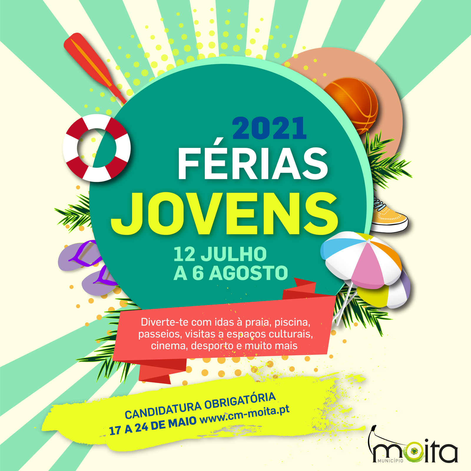 As inscrições para o programa Férias Jovens 2021 decorrem de 17 a 24 de maio (até às 24:00h) aqui, no site da Câmara Municipal da Moita.