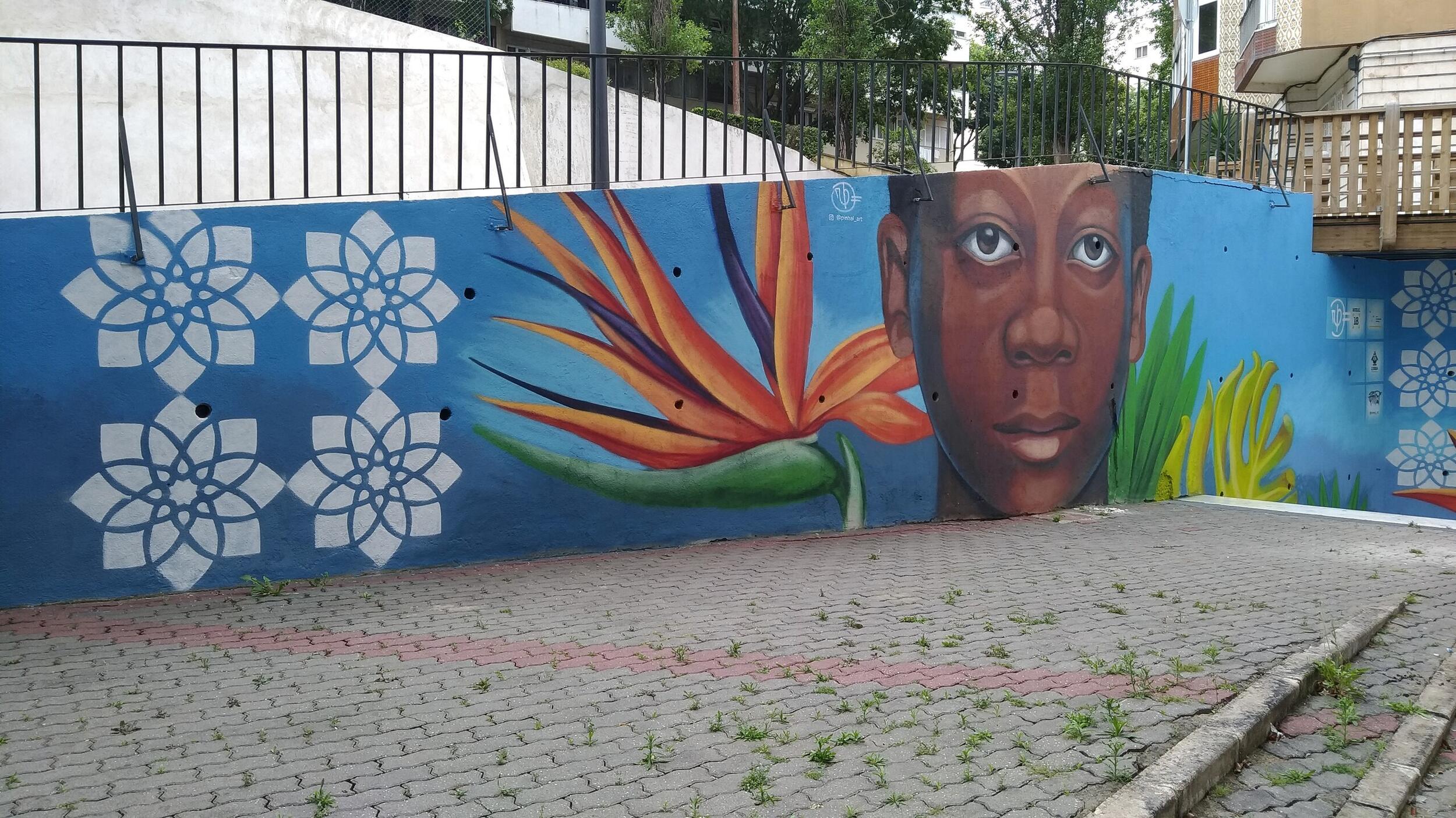 A presença de duas crianças num cenário composto por elementos relativos à fauna e flora pretende não só representar a necessidade de uma conexão com a natureza, mas também representar parte de uma identidade originada pelos movimentos de imigração decorridos ao longo de décadas em diversos territórios da Área Metropolitana de Lisboa. As duas crianças representam, assim, os filhos de uma imigração que, na maioria das vezes, crescem e convivem com diferentes comunidades nos chamados Bairros Sociais, onde a partilha de culturas e costumes surge como forma de inclusão e de afirmação.
