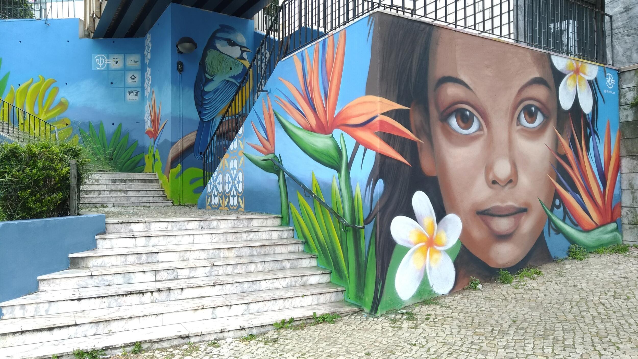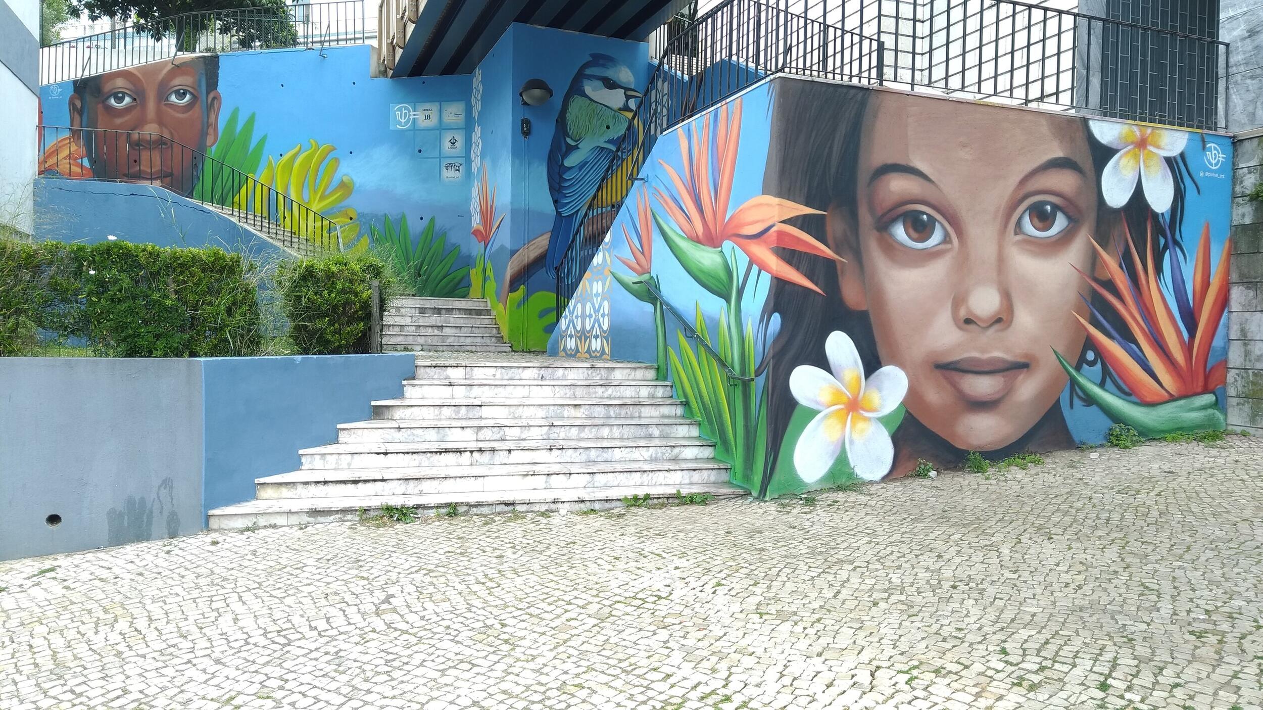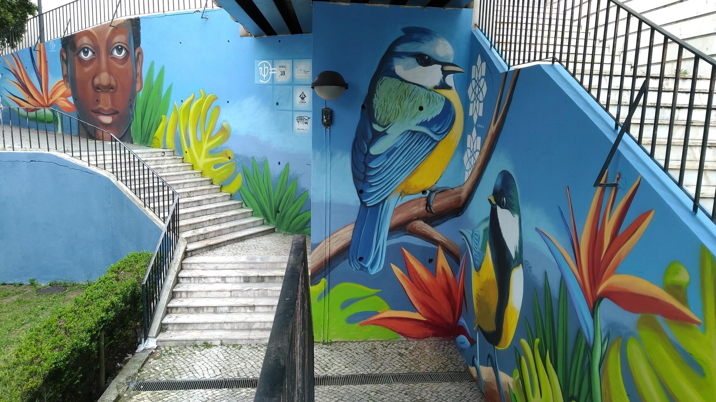 O artista do concelho da Moita Pedro Pinhal já terminou a pintura do mural em Lisboa, num dos acessos à ponte pedonal na Calçada de Carriche. Pedro Pinhal foi o artista sorteado para realizar este trabalho em Lisboa no âmbito da iniciativa cultural em rede Mural 18.