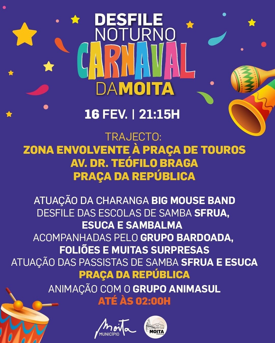 Contamos consigo hoje, a partir das 21:15h, para encher a Moita de cor, alegria e muitos foliões.
