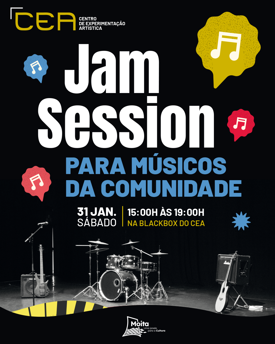 Participação gratuita mediante inscrição através do email cea@mail.cm-moita.pt. Venha fazer parte deste encontro no CEA onde a arte acontece ao vivo, em tempo real, revelando a alma musical comunitária.