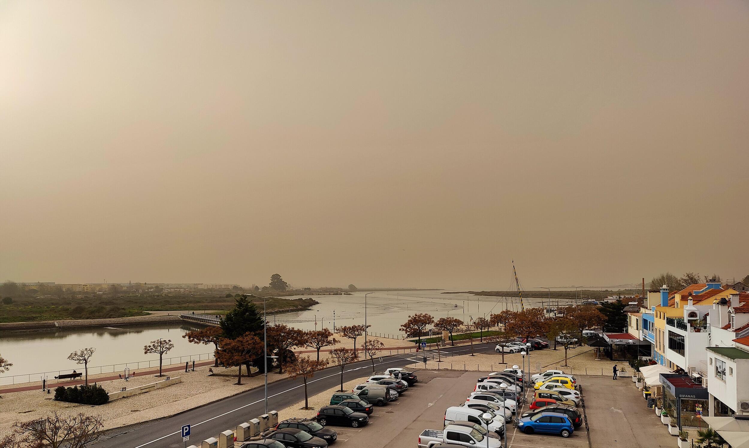 Segundo o Instituto Português do Mar e da Atmosfera - IPMA, está a ocorrer o transporte de poeiras sobre o território continental devido a um fluxo de sul induzido pela depressão Célia.