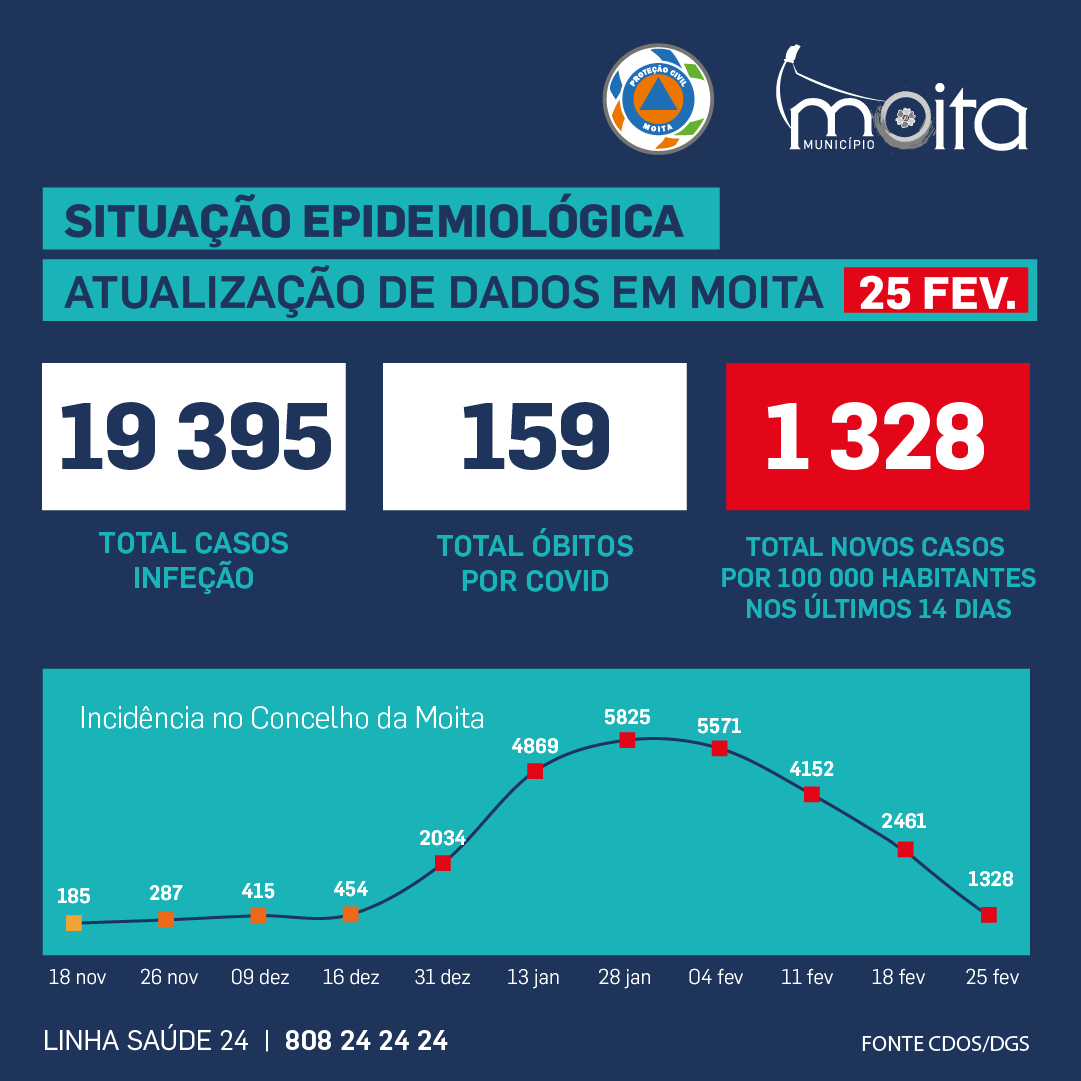 Situação epidemiológica no concelho da Moita | 25 de fevereiro